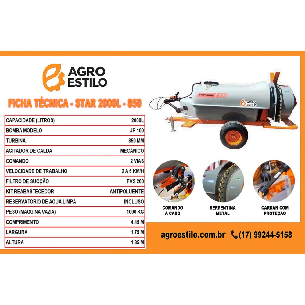 ATOMIZADOR STAR TURB 2000 LITROS 850MM - AGRO ESTILO