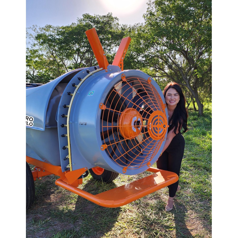 Sua turbina de 850 mm com 10 pás assegura ampla faixa de pulverização, enquanto a serpentina e os porta-bicos em latão anticorrosivo oferecem longa vida útil, mesmo sob uso contínuo de produtos químicos.